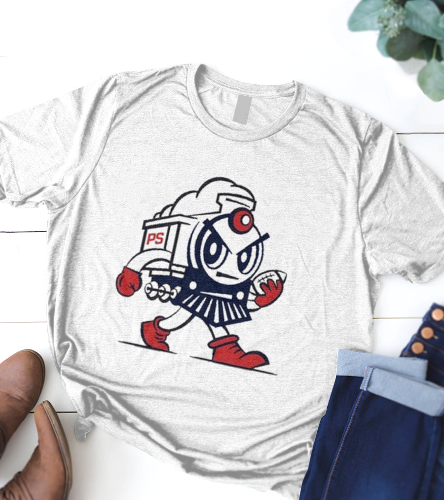 Josh Pate Mascot PS Train Football Character Shirt made from 100% pre-shrunk ring-spun cotton, unisex regular fit based on U.S. standard sizing. The shirt is designed, cut, sewn, and printed in the United States. Available in sizes S-5XL.