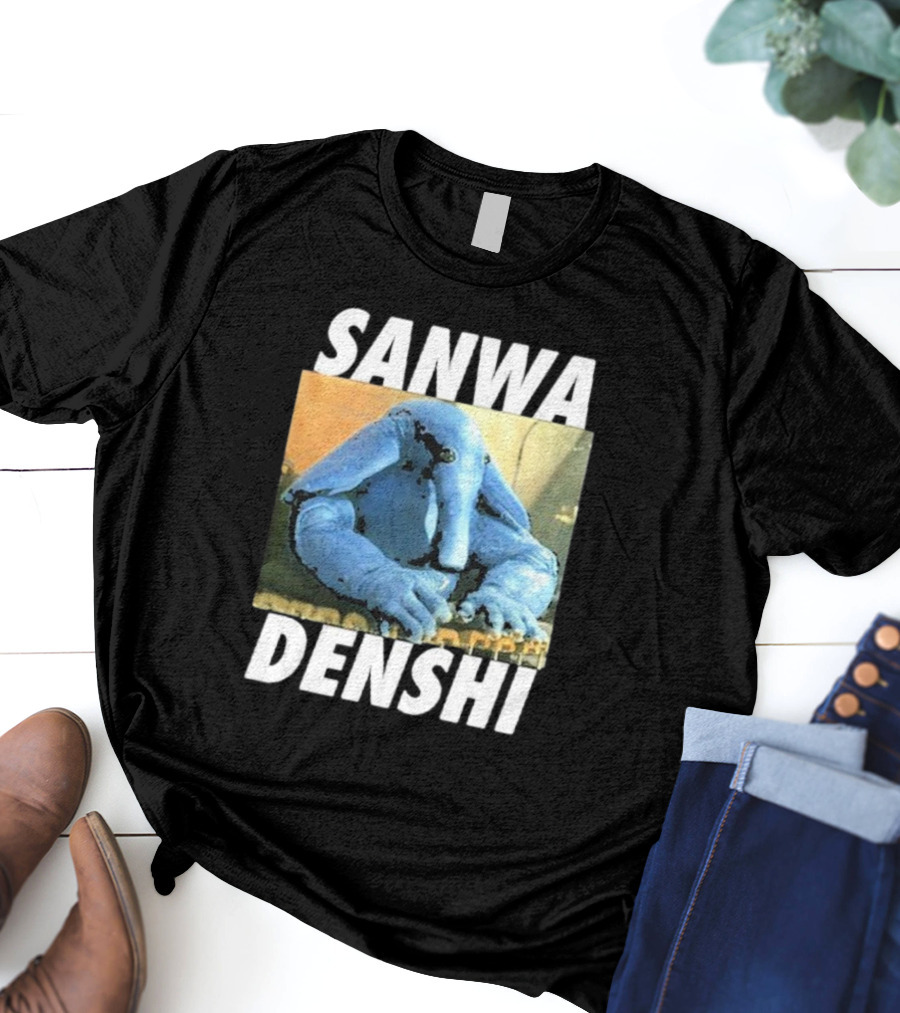SANWA DENSHI Blue Elephant Playing Keyboards Shirt made from 100% pre-shrunk ring-spun cotton, unisex regular fit based on U.S. standard sizing. The shirt is designed, cut, sewn, and printed in the United States. Available in sizes S-5XL.