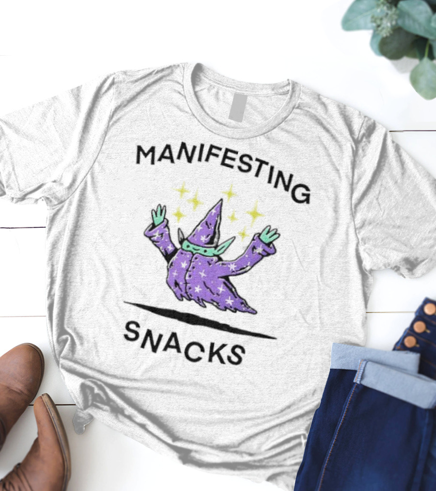Manifesting Snacks Flying Wizard With Stars T-Shirt