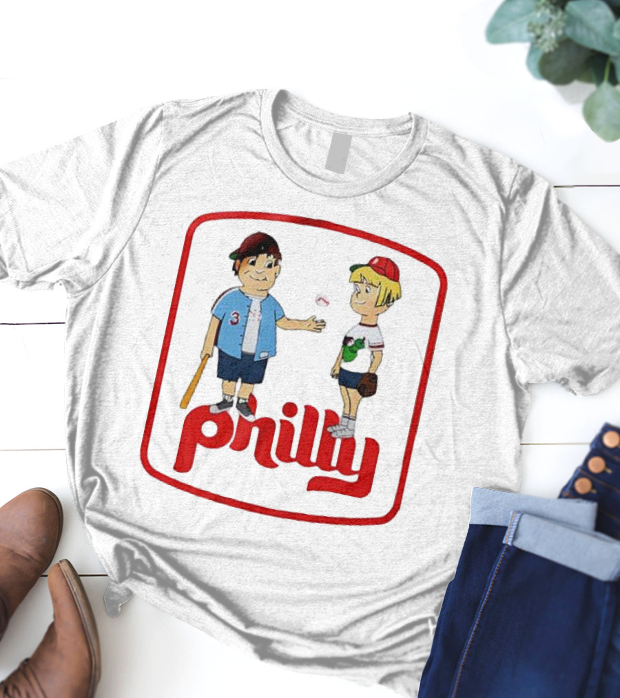Philadelphia Phillies Phil and Phillis Philly Baseball Cartoon Shirt made from 100% pre-shrunk ring-spun cotton, unisex regular fit based on U.S. standard sizing. The shirt is designed, cut, sewn, and printed in the United States. Available in sizes S-5XL.