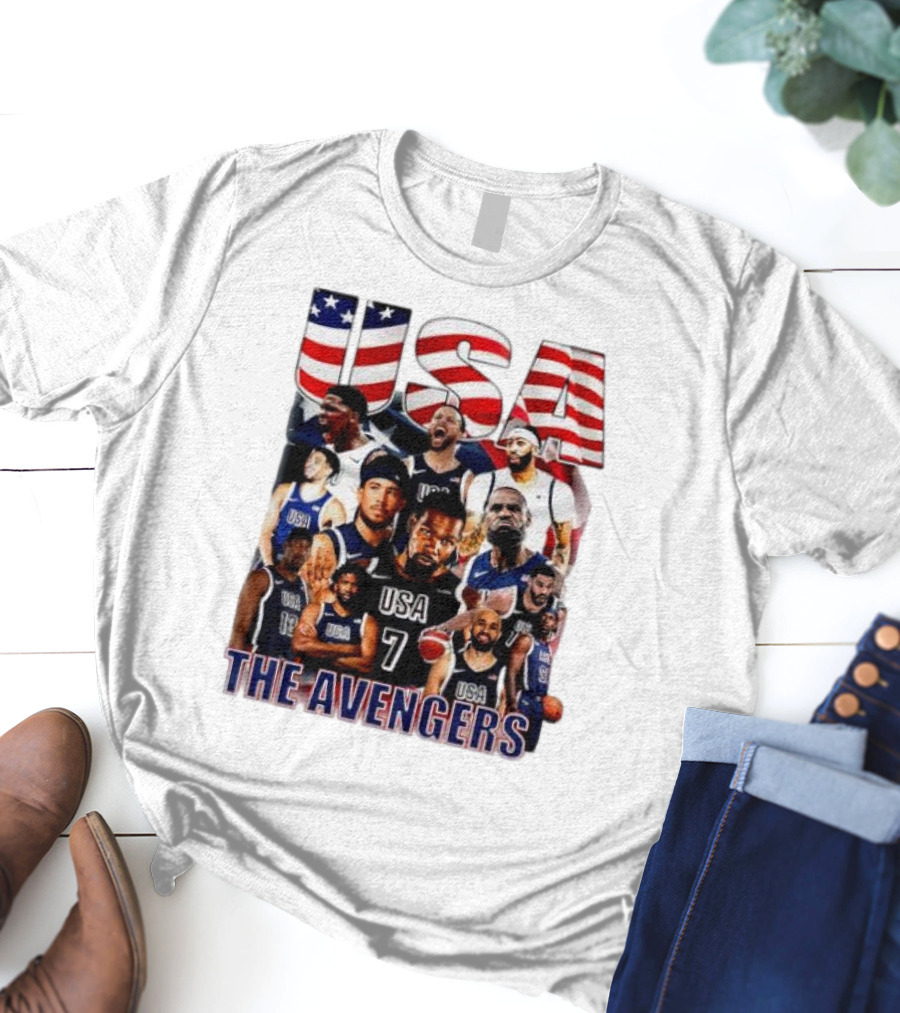 USA The Avengers All Team Players Basketball Stars Shirt made from 100% pre-shrunk ring-spun cotton, unisex regular fit based on U.S. standard sizing. The shirt is designed, cut, sewn, and printed in the United States. Available in sizes S-5XL.