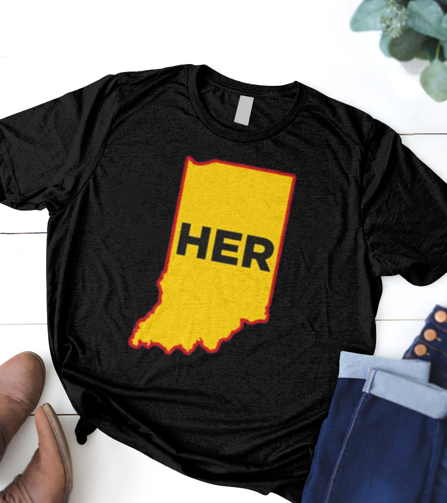 Indiana HER Map Shirt made from 100% pre-shrunk ring-spun cotton, unisex regular fit based on U.S. standard sizing. The shirt is designed, cut, sewn, and printed in the United States. Available in sizes S-5XL.