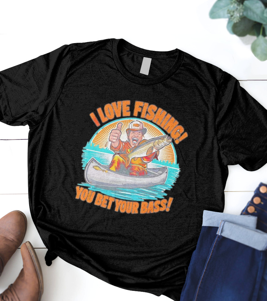 I Love Fishing You Bet Your Bass Fisherman In Canoe With Thumbs Up T-Shirt
