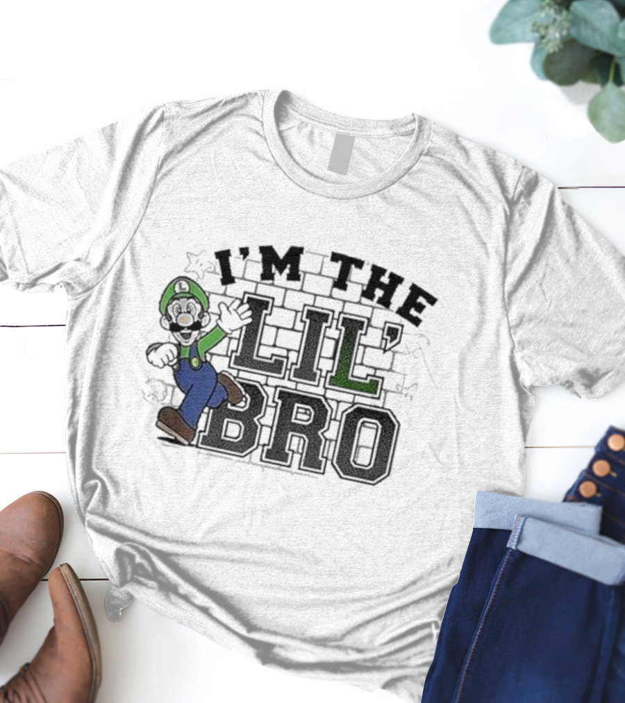 I'm The Lil' Bro Luigi Action Pose Super Mario Dark Shirt made from 100% pre-shrunk ring-spun cotton, unisex regular fit based on U.S. standard sizing. The shirt is designed, cut, sewn, and printed in the United States. Available in sizes S-5XL.