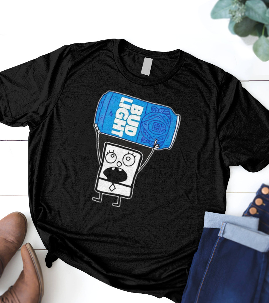 Doodlebob Holding Bud Light Can Shirt made from 100% pre-shrunk ring-spun cotton, unisex regular fit based on U.S. standard sizing. The shirt is designed, cut, sewn, and printed in the United States. Available in sizes S-5XL.
