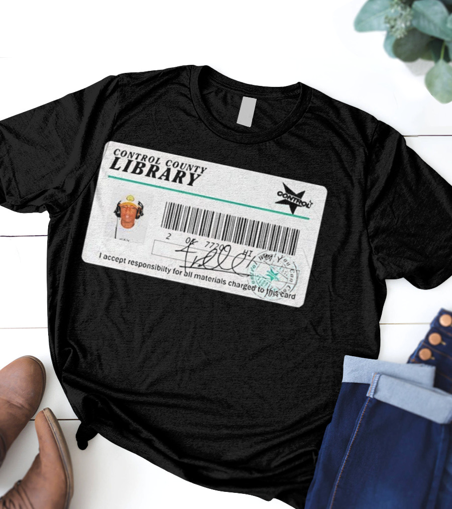 Control County Library Card Design with Signature and Photo Shirt made from 100% pre-shrunk ring-spun cotton, unisex regular fit based on U.S. standard sizing. The shirt is designed, cut, sewn, and printed in the United States. Available in sizes S-5XL.