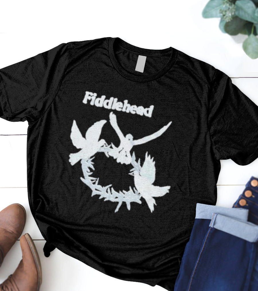 Fiddlehead White Doves in Flight Ring Shirt made from 100% pre-shrunk ring-spun cotton, unisex regular fit based on U.S. standard sizing. The shirt is designed, cut, sewn, and printed in the United States. Available in sizes S-5XL.