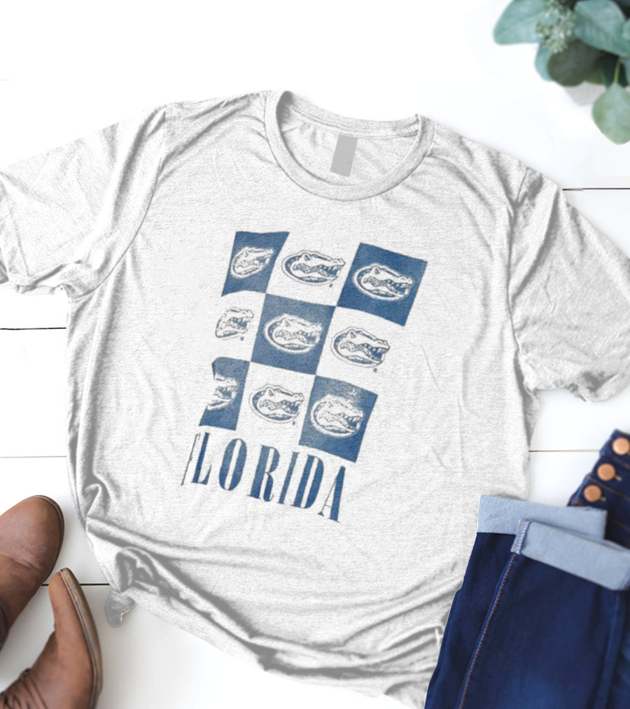 Florida Gators Pressbox Women's Checkerboard Logo Andy Waist Length Oversized Shirt made from 100% pre-shrunk ring-spun cotton, unisex regular fit based on U.S. standard sizing. The shirt is designed, cut, sewn, and printed in the United States. Available in sizes S-5XL.