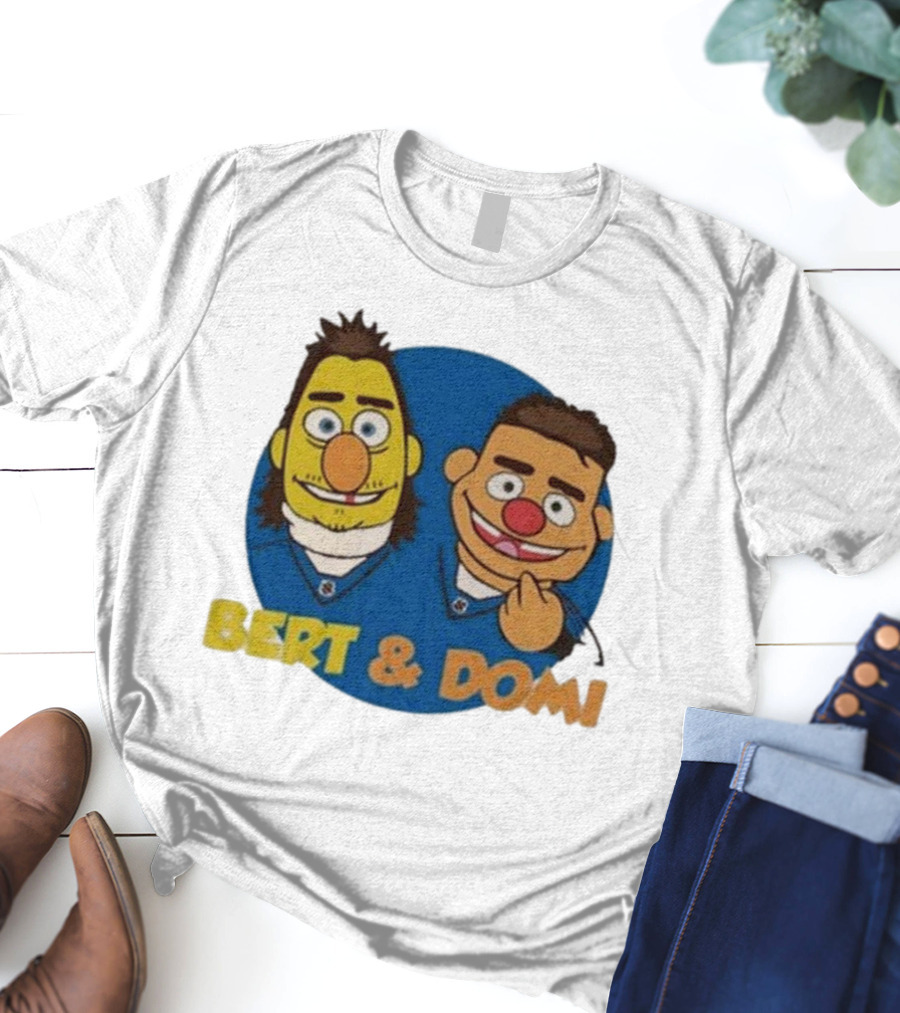 Bert And Domi Flowbuds Logo Cartoon Shirt made from 100% pre-shrunk ring-spun cotton, unisex regular fit based on U.S. standard sizing. The shirt is designed, cut, sewn, and printed in the United States. Available in sizes S-5XL.