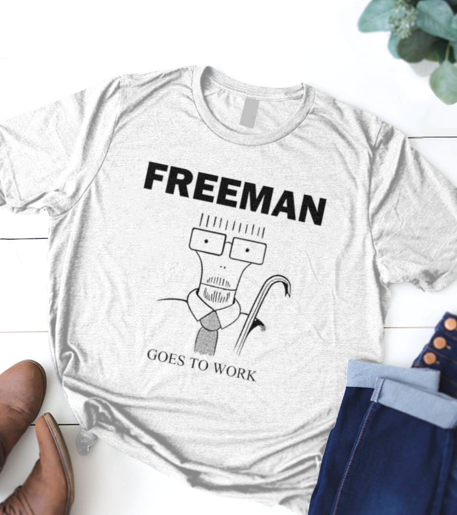 Freeman Goes To Work With Minimalist Character and Iconic Suit Tie Shirt made from 100% pre-shrunk ring-spun cotton, unisex regular fit based on U.S. standard sizing. The shirt is designed, cut, sewn, and printed in the United States. Available in sizes S-5XL.