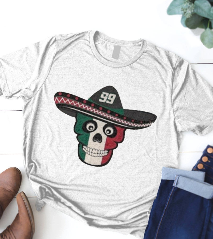 Daniel Suarez Racing 99 Mexican Skull Sombrero Shirt made from 100% pre-shrunk ring-spun cotton, unisex regular fit based on U.S. standard sizing. The shirt is designed, cut, sewn, and printed in the United States. Available in sizes S-5XL.