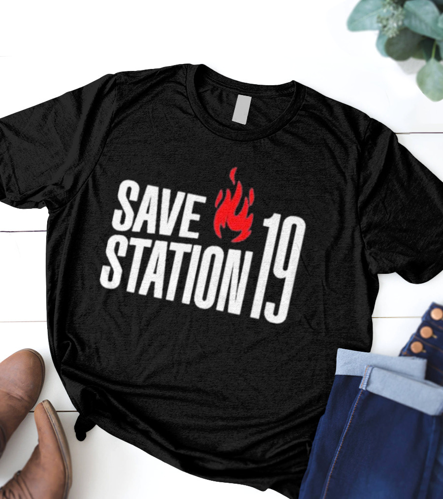 Save Station 19 Fire Flame Shirt made from 100% pre-shrunk ring-spun cotton, unisex regular fit based on U.S. standard sizing. The shirt is designed, cut, sewn, and printed in the United States. Available in sizes S-5XL.