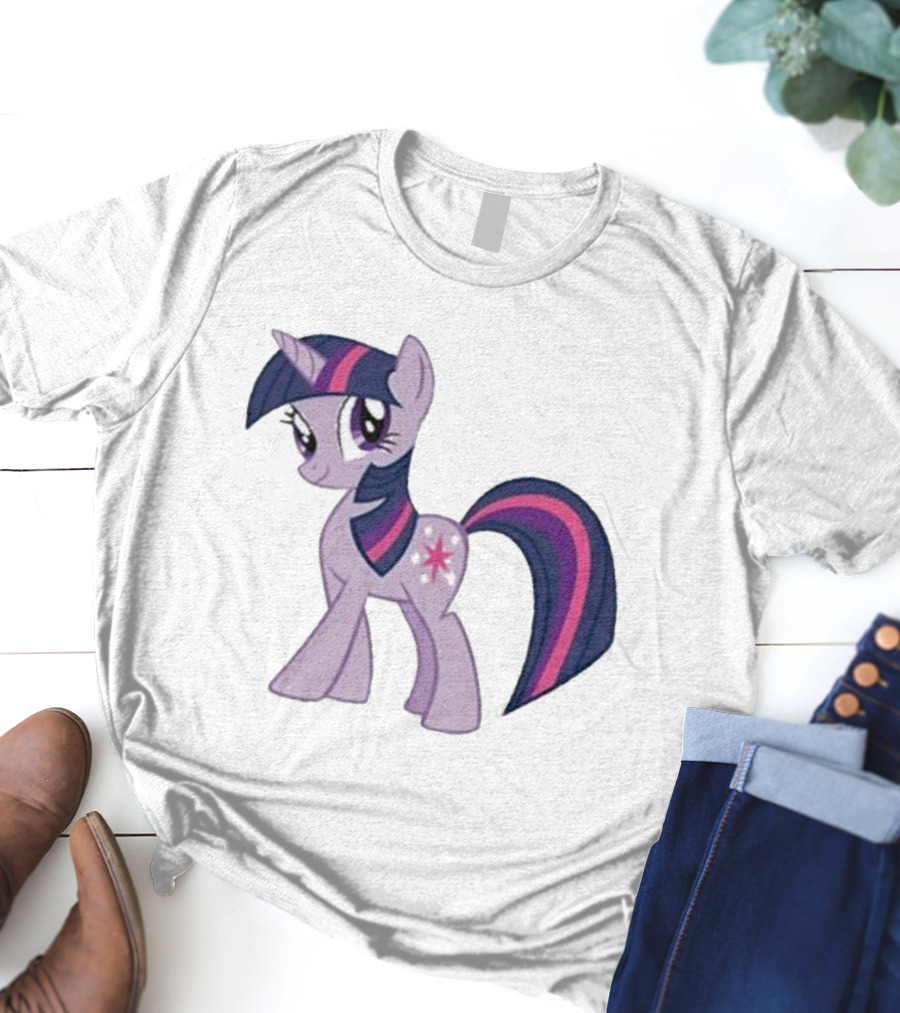 Delango Twilight Sparkle My Little Pony AJ's Boutique Shirt made from 100% pre-shrunk ring-spun cotton, unisex regular fit based on U.S. standard sizing. The shirt is designed, cut, sewn, and printed in the United States. Available in sizes S-5XL.