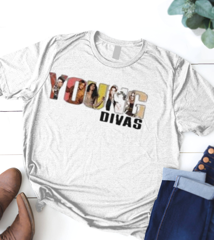 Discopash Young Divas Icons Shirt made from 100% pre-shrunk ring-spun cotton, unisex regular fit based on U.S. standard sizing. The shirt is designed, cut, sewn, and printed in the United States. Available in sizes S-5XL.