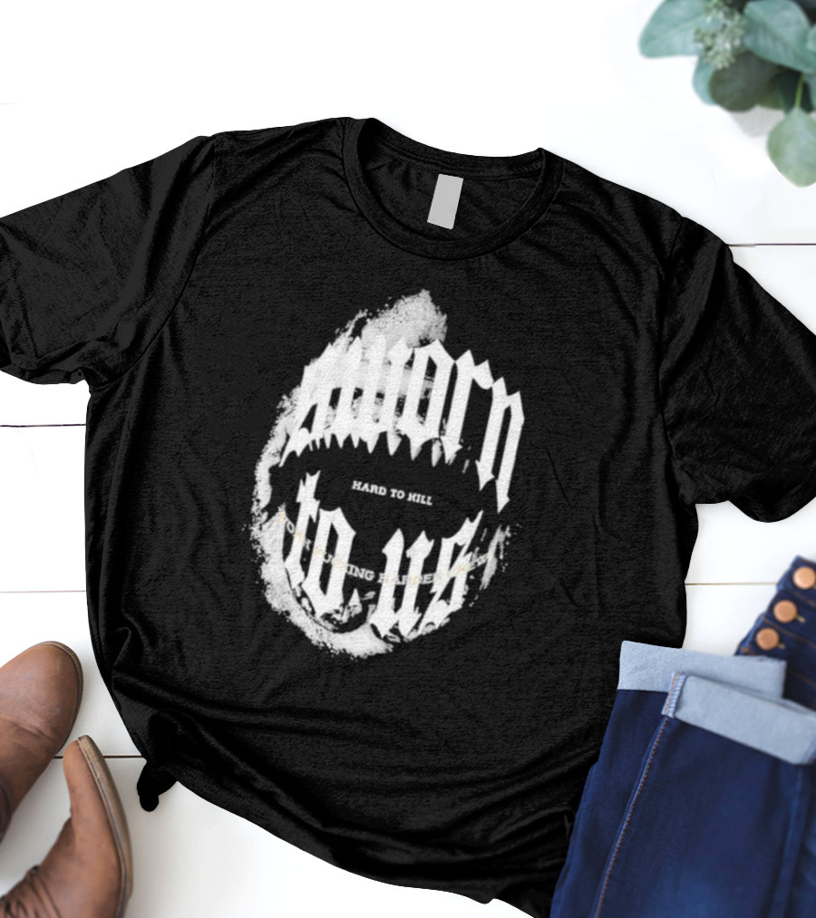 Doknowsworld Sworn To Us Hard To Kill Black Print Shirt made from 100% pre-shrunk ring-spun cotton, unisex regular fit based on U.S. standard sizing. The shirt is designed, cut, sewn, and printed in the United States. Available in sizes S-5XL.