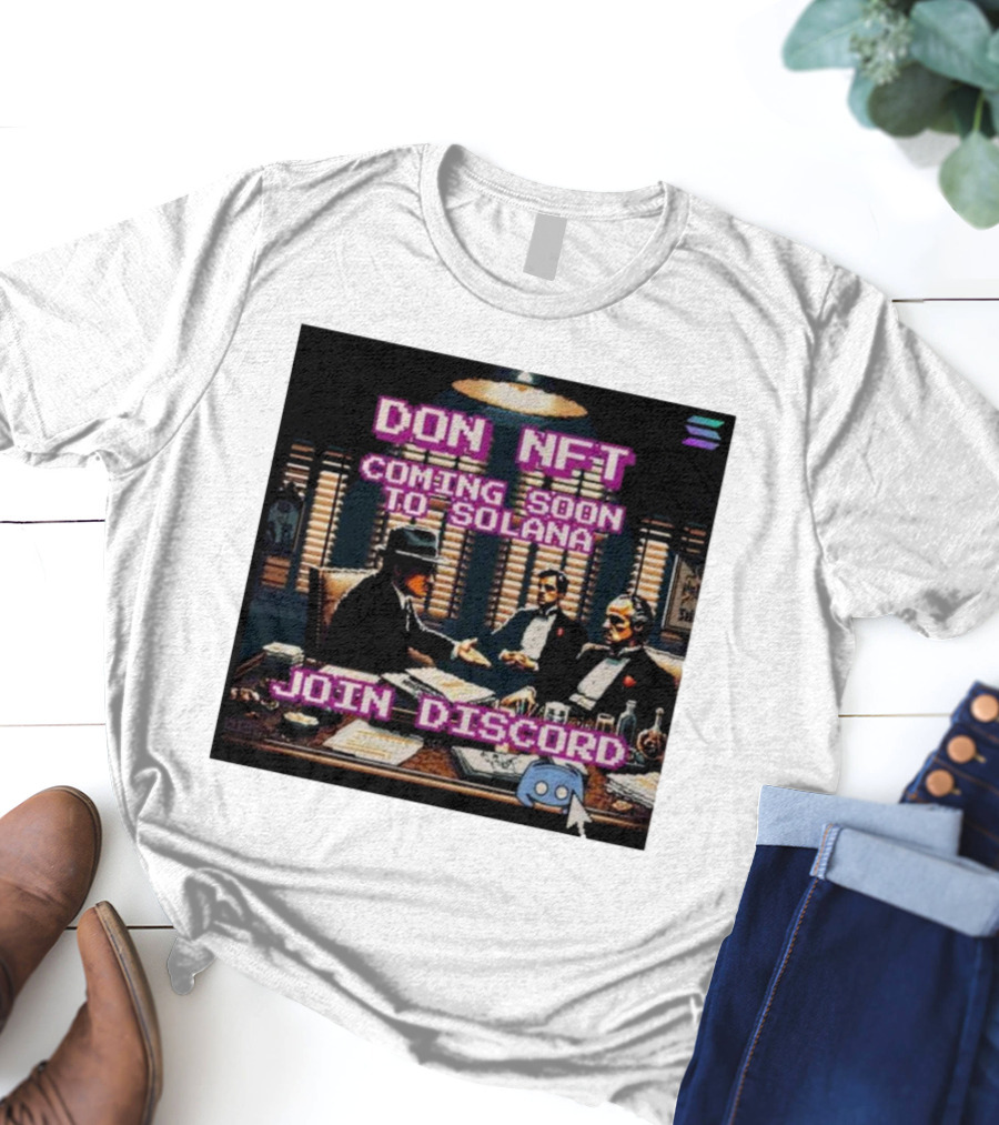 Don NFT Coming Soon to Solana Join Discord Pixel Art Gentlemen Meeting Shirt made from 100% pre-shrunk ring-spun cotton, unisex regular fit based on U.S. standard sizing. The shirt is designed, cut, sewn, and printed in the United States. Available in sizes S-5XL.