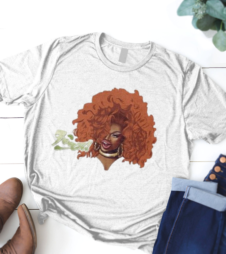 Drag Queen Sunami Foam Iconic Curly Hair Shirt made from 100% pre-shrunk ring-spun cotton, unisex regular fit based on U.S. standard sizing. The shirt is designed, cut, sewn, and printed in the United States. Available in sizes S-5XL.