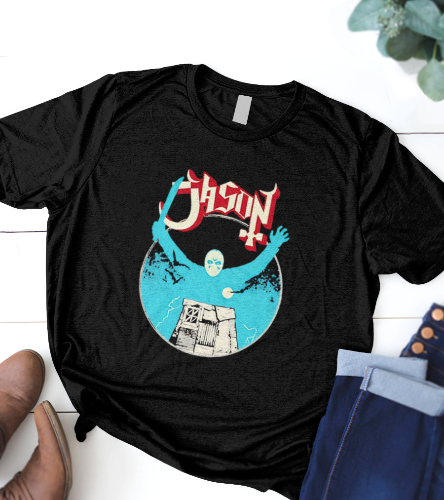 Jason Ghost Heavy Metal Turbo Cabin and Mask Shirt made from 100% pre-shrunk ring-spun cotton, unisex regular fit based on U.S. standard sizing. The shirt is designed, cut, sewn, and printed in the United States. Available in sizes S-5XL.
