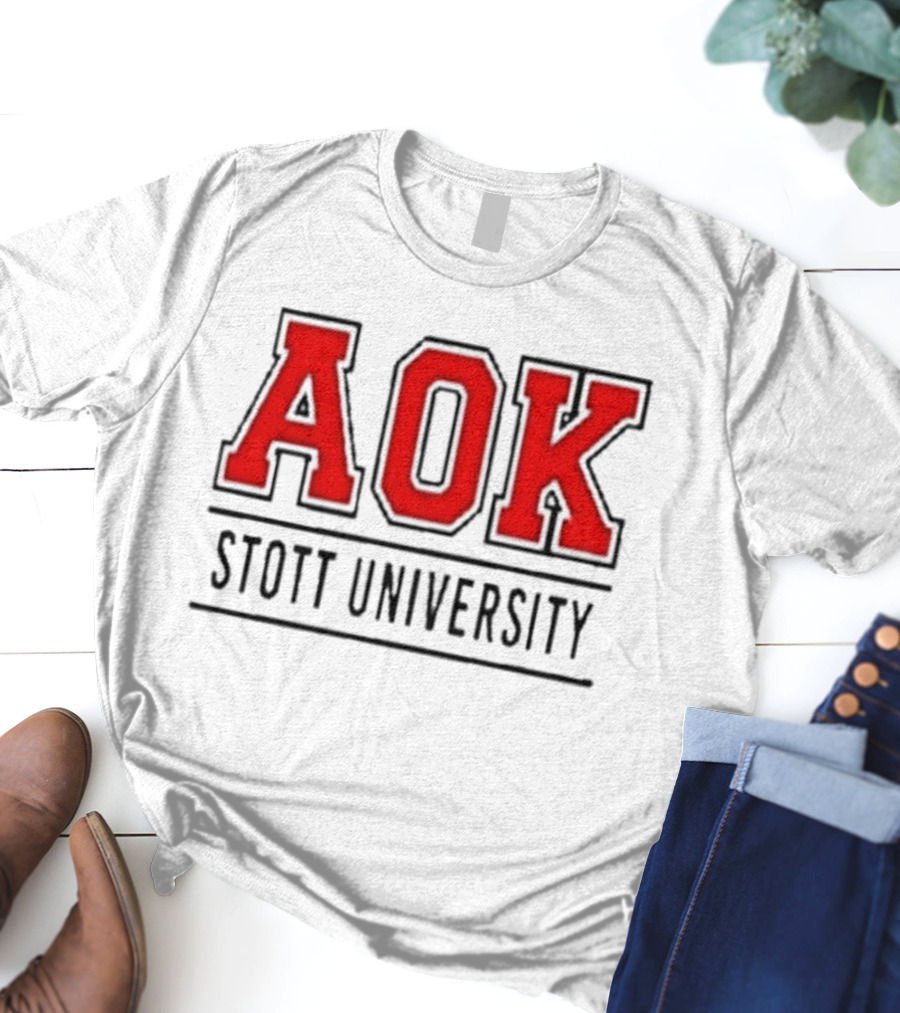 AOK Stott University Bella Stottlover Shirt made from 100% pre-shrunk ring-spun cotton, unisex regular fit based on U.S. standard sizing. The shirt is designed, cut, sewn, and printed in the United States. Available in sizes S-5XL.