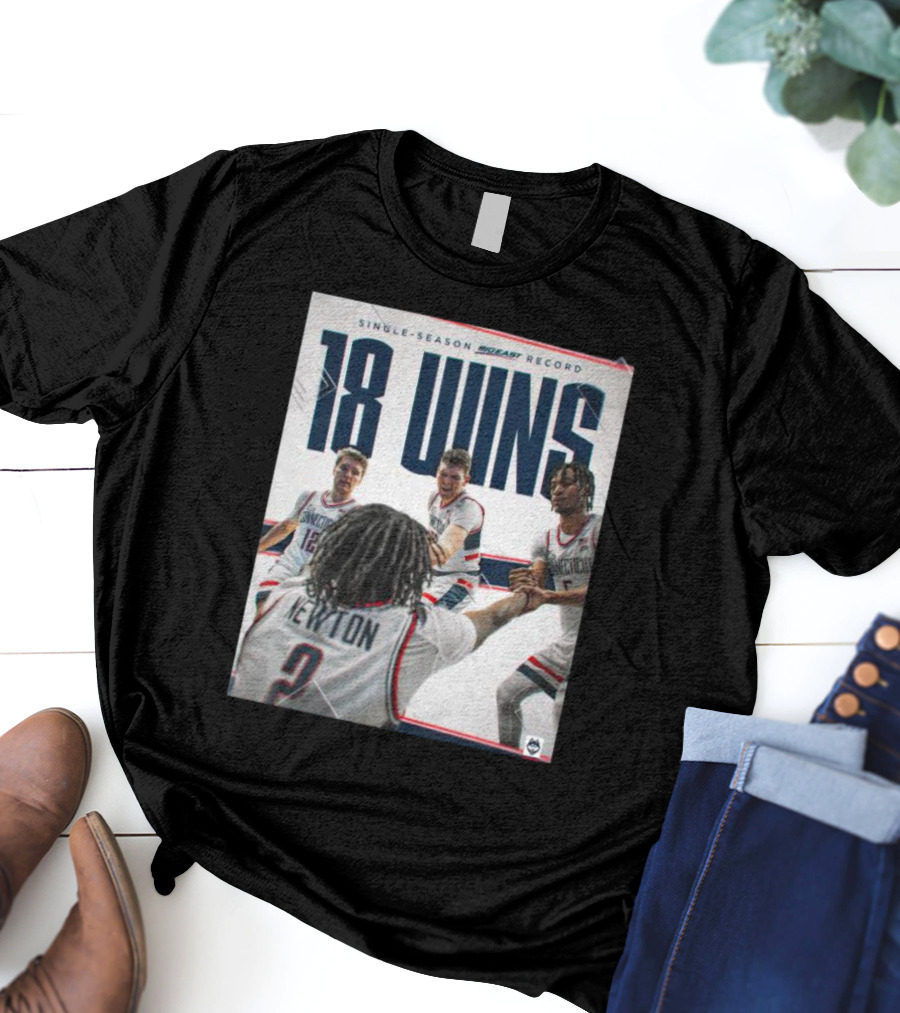 Single Season Bigeast Record 18 Wins UConn Basketball Team Shirt made from 100% pre-shrunk ring-spun cotton, unisex regular fit based on U.S. standard sizing. The shirt is designed, cut, sewn, and printed in the United States. Available in sizes S-5XL.