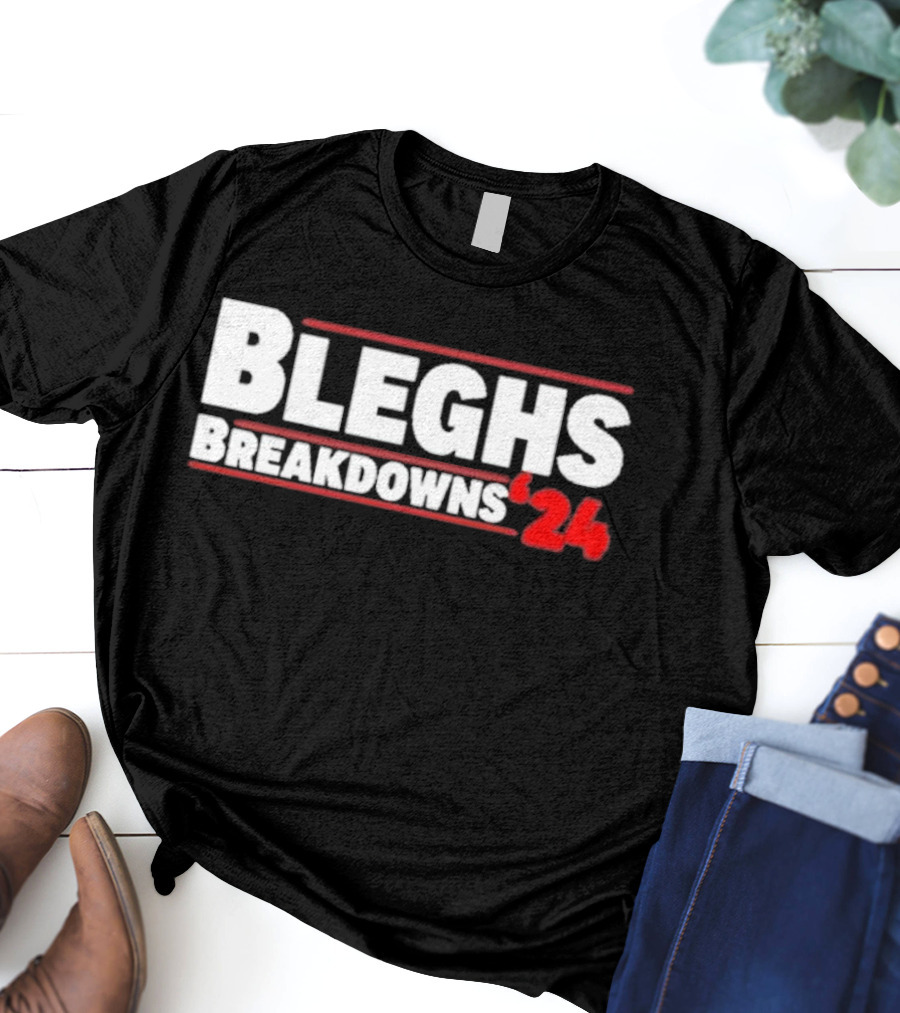 BLEGHS Breakdowns Shirt made from 100% pre-shrunk ring-spun cotton, unisex regular fit based on U.S. standard sizing. The shirt is designed, cut, sewn, and printed in the United States. Available in sizes S-5XL.