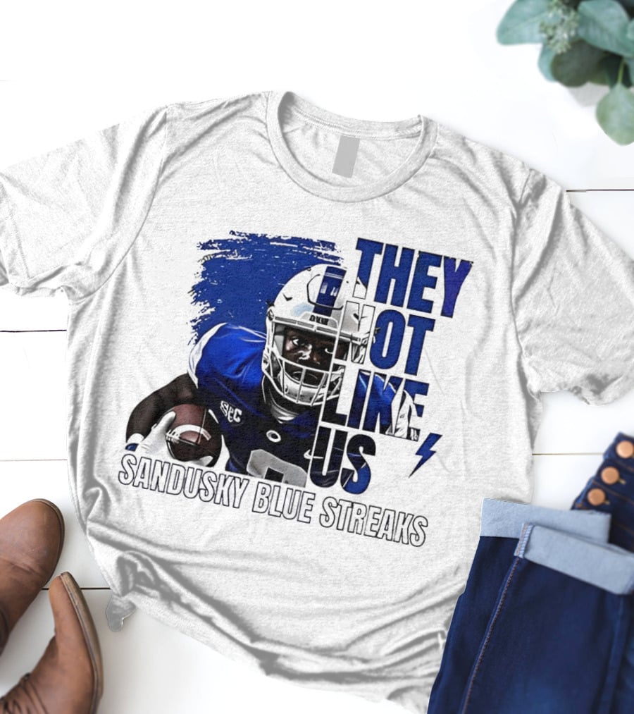 Sandusky Blue Streaks They Not Like Us Football Player Grunge T-Shirt