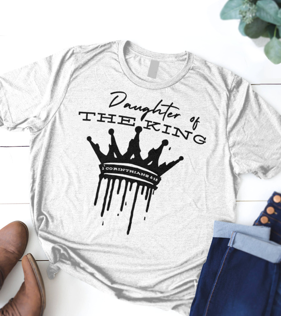 Daughter of the King 1 Corinthians 6:18 Crown Shirt made from 100% pre-shrunk ring-spun cotton, unisex regular fit based on U.S. standard sizing. The shirt is designed, cut, sewn, and printed in the United States. Available in sizes S-5XL.
