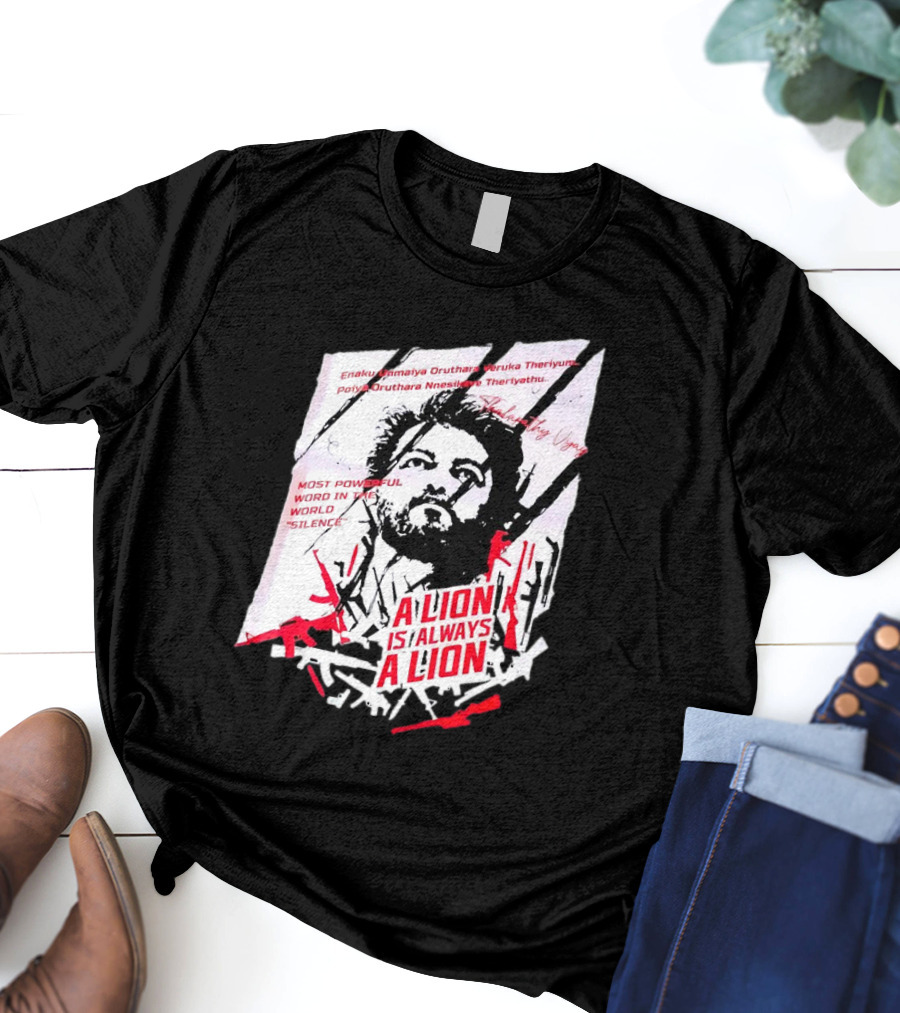 A Lion Is Always A Lion Thalapathy Vijay Most Powerful Word In The World Silence T-Shirt