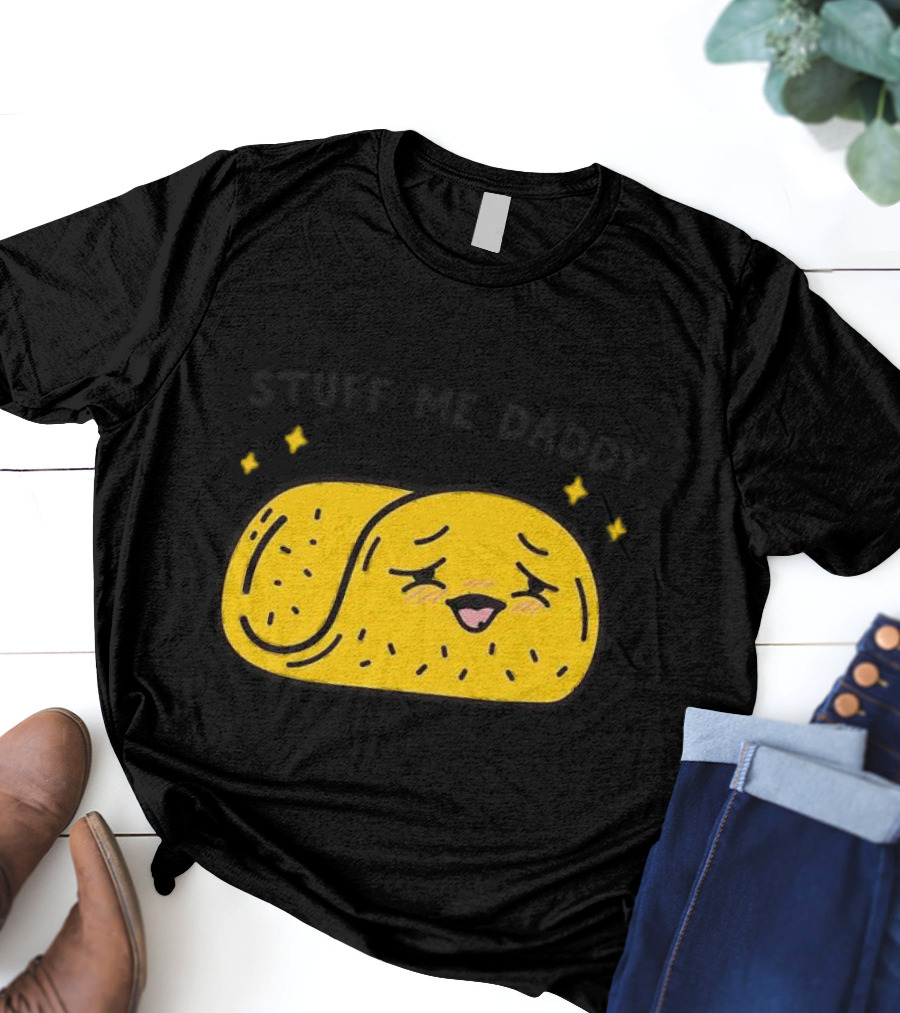 Stuff Me Daddy Taco with Sparkles and Smiley Face Shirt made from 100% pre-shrunk ring-spun cotton, unisex regular fit based on U.S. standard sizing. The shirt is designed, cut, sewn, and printed in the United States. Available in sizes S-5XL.