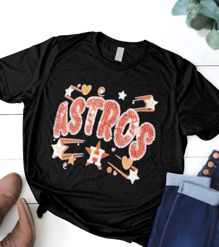 Houston Astros New Era Girls Youth Sequin Astros Hearts Stars Shirt made from 100% pre-shrunk ring-spun cotton, unisex regular fit based on U.S. standard sizing. The shirt is designed, cut, sewn, and printed in the United States. Available in sizes S-5XL.
