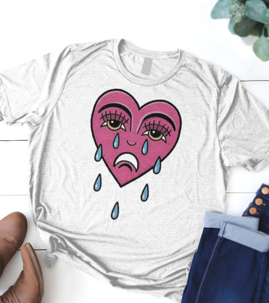 Hursey Hand Painter Crying Heart Sad Pink Teardrop Face Shirt made from 100% pre-shrunk ring-spun cotton, unisex regular fit based on U.S. standard sizing. The shirt is designed, cut, sewn, and printed in the United States. Available in sizes S-5XL.