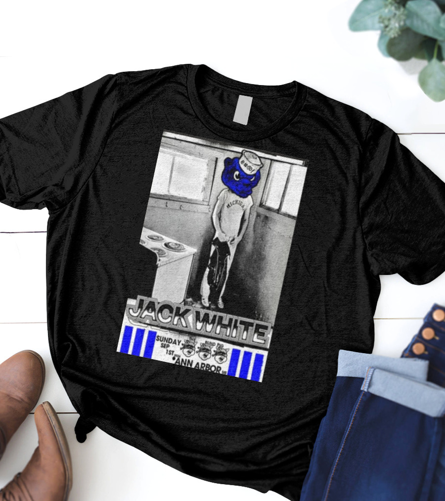 Jack White Michigan Blue Bear Ann Arbor September 1 Shirt made from 100% pre-shrunk ring-spun cotton, unisex regular fit based on U.S. standard sizing. The shirt is designed, cut, sewn, and printed in the United States. Available in sizes S-5XL.