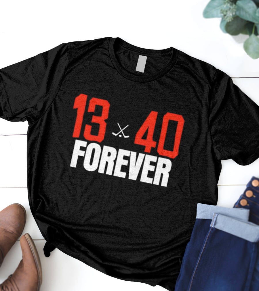 Johnny Gaudreau Hockey 13 40 Forever Shirt made from 100% pre-shrunk ring-spun cotton, unisex regular fit based on U.S. standard sizing. The shirt is designed, cut, sewn, and printed in the United States. Available in sizes S-5XL.
