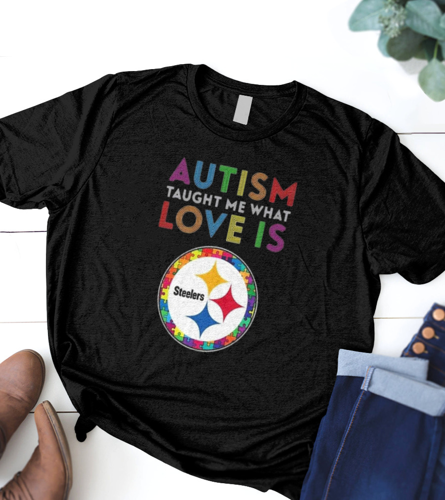 Autism Taught Me What Love Is Pittsburgh Steelers Puzzle T-Shirt