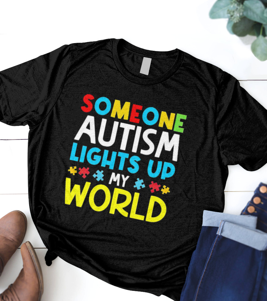 Someone Autism Awareness Lights Up My World Puzzle Pieces T-Shirt