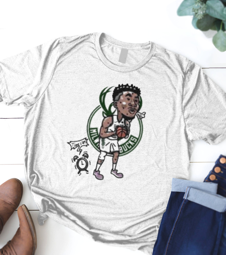Giannis Antetokounmpo Milwaukee Bucks Cartoon Basketball Player Clock T-Shirt