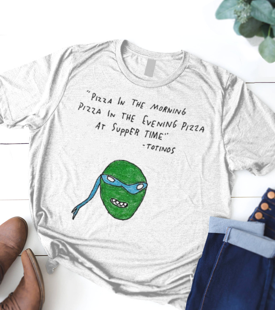 Leonardo Pizza In The Morning Pizza In The Evening Pizza At Supper Time Totinos Shirt made from 100% pre-shrunk ring-spun cotton, unisex regular fit based on U.S. standard sizing. The shirt is designed, cut, sewn, and printed in the United States. Available in sizes S-5XL.
